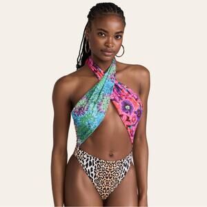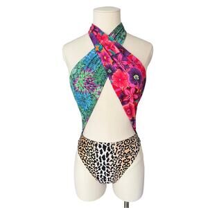 Reina Olga Italian Stallion One Piece Leopard Floral Swimsuit S