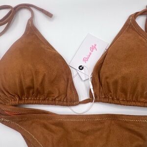 New with tag Reina Olga suede effect triangle bikini set L. Removable pads. Tag is only attached to top. No hygienic liner.