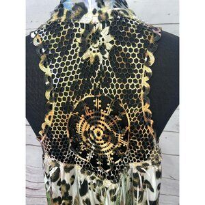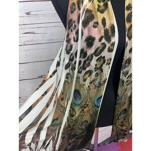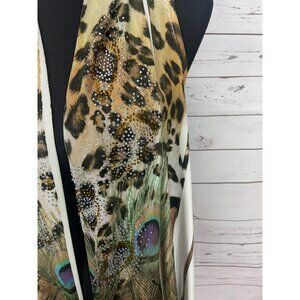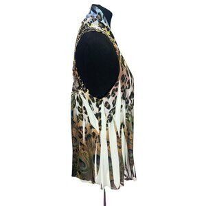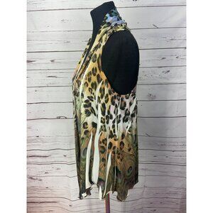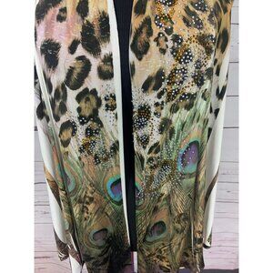 Reina Peacock & Animal Print Sleeveless Cardigan Open Knit Detail Size Large