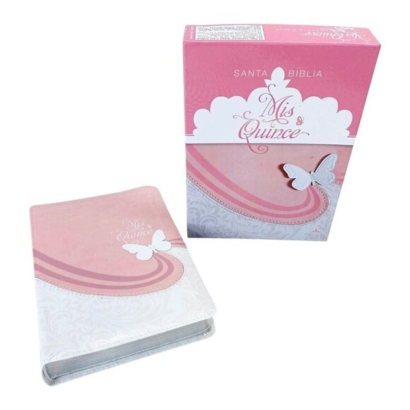 Celebrate a special milestone with the Santa Biblia "Mis Quince" Reina Valera RVR 1960 Bible, designed as the perfect gift for a young woman's Quinceañera. Featuring a beautiful pink and white cover adorned with elegant swirls and a delicate butterfly, this Bible comes new in its original decorative box, making it ready for gifting. The trusted Reina Valera 1960 translation offers timeless inspiration and guidance, making it a meaningful keepsake she will cherish for years to come.