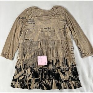 Reina Women's New York Newspaper Printed Layered Pullover Blouse Top Y2K USA L