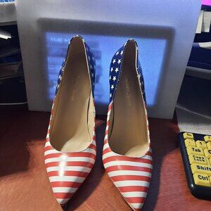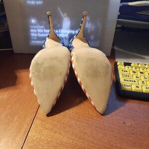 Reindee Lusion WMN Hight Stiletto Heels Pumps MultiColor Printed Closed Toe Sz 8 PreLoved Excellent Condition