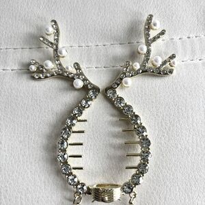 Reindeer Antler Holiday Hair Clip White Rhinestone Pearl Ponytail Bun Holder