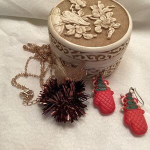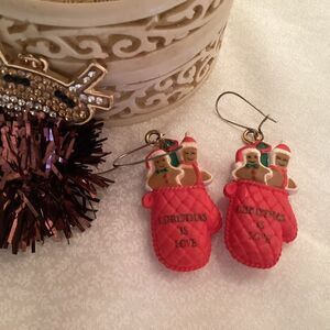 Reindeer Necklace and Gingerbread in a Mitten Earrings