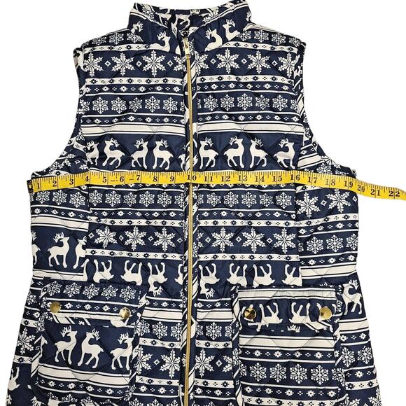 Reindeer Puffer Vest Sz M Pockets Holiday Winter Christmas Cottagecore
