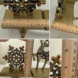 Add festive charm to your holiday décor with this elegant Reindeer and Snowflake Stocking Holder Set. Each piece features a detailed openwork design adorned with colorful faux jewels, crafted in an antique gold-tone metal finish. The weighted bases sit securely on a mantel, shelf, or tabletop, while the front hooks hold Christmas stockings or garlands in style.
