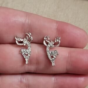 Reindeer shaped crydtal silver tone Christmas post earrings