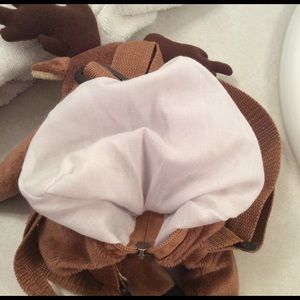Unbranded adorable reindeer toddler backpack. Size 13” long, 11” wide. Embroidered Christmas lights on antlers. Adjustable straps for a great fit. Hook for hanging. EUC from a smoke free home.