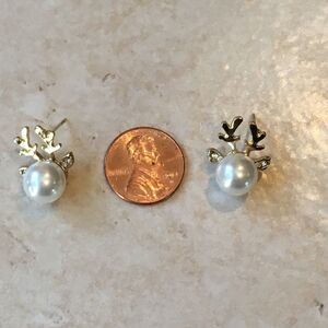 Reindeer Antlers Faux Pearl & Rhinestone Earrings NWT are a brand new item
