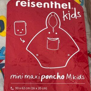 New, sealed Reisenthel M Kids Mini Maxi Poncho with a circus pattern sized for children ages 3-6 years, according to the manufacturer. This water-repellent rain cape is made for outdoor adventures and features a cute circus pattern with gray, blue, yellow and red colors.
