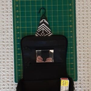 The toiletbag XL from reisenthel is large, extremely practical and useful anywhere you want to go. Arrive, unfold, hang it up. The ideal companion when it comes to organizing your toiletry essentials on the go. Geometric patterned fabric is water resistant. Lightly used, it's clean and like new)