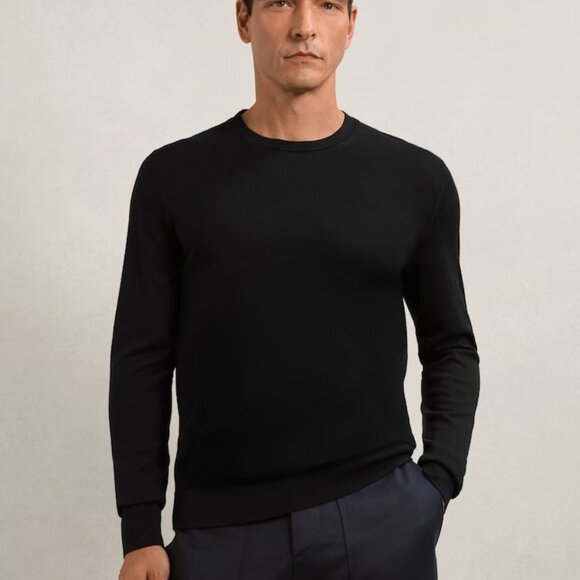 Classic lightweight merino wool sweater from Reiss in timeless black. Crafted from extra-fine merino wool for a soft, breathable, and temperature-regulating feel. Perfect for layering or wearing on its own for a refined, minimalist look.