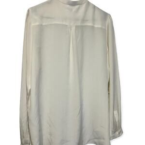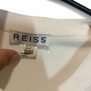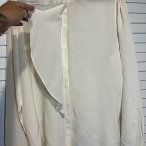 Reiss 100% Silk Ivory Ruffle Front Blouse Button Up Shirt Long Sleeve Women 10