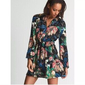 Reiss Alyssa Floral Flippy Drawstring Long Sleeve Multicolor Dress Size 4