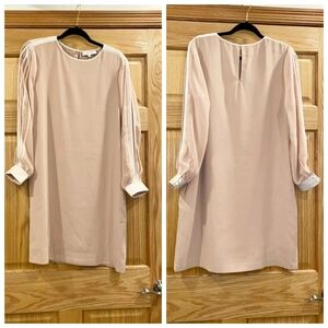 In an effortless nude colourway, the long-sleeved Amerie shift dress is unabashedly feminine. Elevating this classic 60s silhouette with pleat detailing along the sleeves and cuffs, this neutral staple caters to a host of occasions and dress codes.