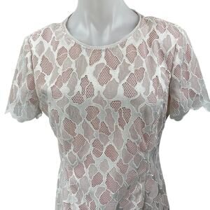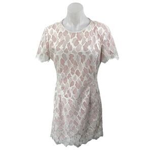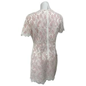 Reiss Anise Pink White Lace Short Sleeve Scalloped Mini Sheath Dress Size 8