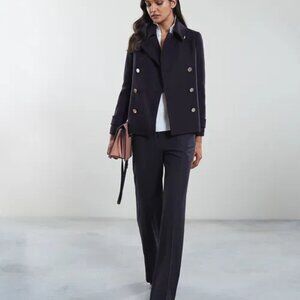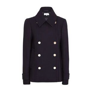 Reiss Becall Button Detail Pea Coat Wool Size 4 Navy Blue Gold Buttons