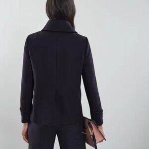It's the perfect cropped length that looks modern but not too trendy. Double-breasted with gold tone buttons.