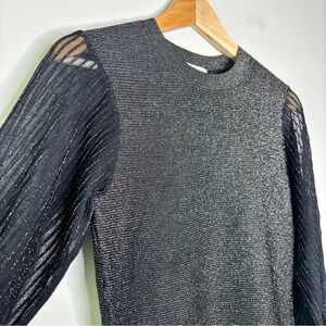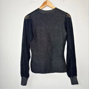 Reiss Black Gold Metallic Long Sheer Sleeve Stretchy Knit Top Size S