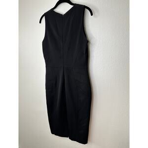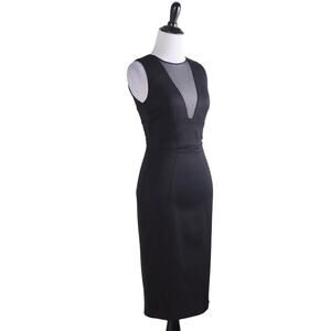 Reiss Black Sheer Mesh V-Neck Sleeveless Stitch Design Brightwell Pencil Sheath Dress