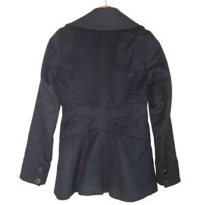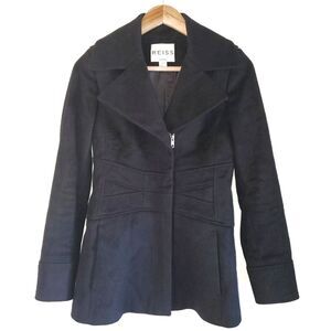 Reiss Black Wool Cashmere Black Pea Coat Jacket Tailored Fit Size XS