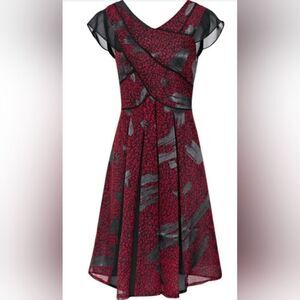Description: Reiss Black Red Loretta Flutter Sleeves Dress sz 2 EUC, concealed back zipper with hook and eye closure, lined, dipped hem with flowy skirt
