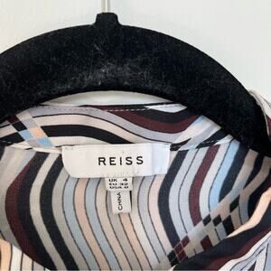 Reiss Blue Brown Penny Swirl Print Top Blouse Size 0