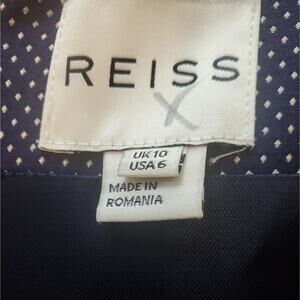 Reiss Blue Navy Dress with Metallic Detailing White Dots Sz 6