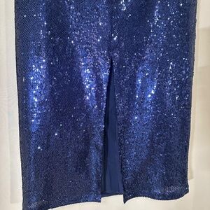 The blue Dakota skirt is a super flatering pencil silhouette with a high rise fit, slash hip pockets, slip lining and back zipper. Can be enlessly styled, from rocker glam to refined formal - a great staple! Only worn once.