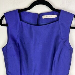 Reiss Blue Silk Wool Blend Square Neck Sleeveless Party/Cocktail Dress Size US 4