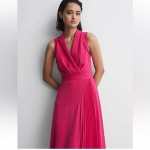 Reiss CLAIRE PLEATED FITTED MIDI DRESS