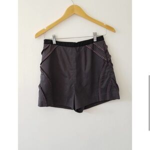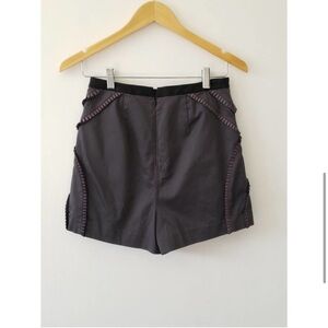 Effortlessly chic tailored shorts in a sleek gray tone, featuring subtle pleat details and decorative trim along the sides. Designed with a high-rise fit and structured silhouette for a polished, modern look — perfect for pairing with blouses, bodysuits, or blazers. Ideal for both casual days and elevated evenings.