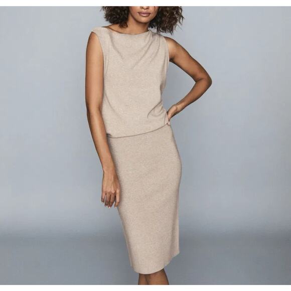 Reiss Claudine Women's Draped Knitted Dress Beige Nude Size XL NWT $330