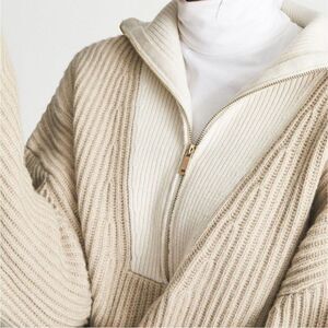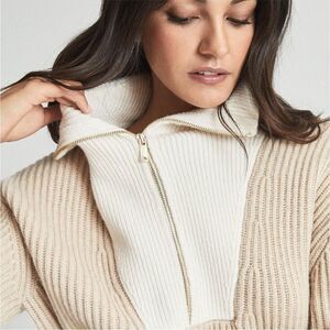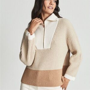 Reiss Cream Sweater NWOT - Jackie Panelled Rib Knitted Half Zip