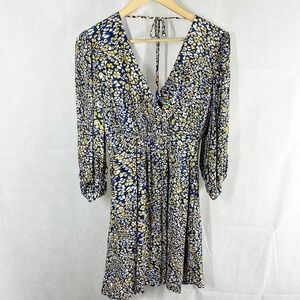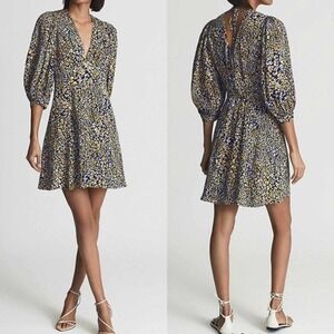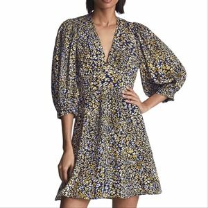 Reiss Daisy Puff Sleeve Mini Dress Size XS Blue Yellow