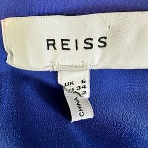 Reiss Daisy Puff Sleeve Mini Dress Size XS Blue Yellow. Pre owned and in excellent like new condition with minimal wash wear. The size tag is cut off, size determine by the UK sizing and reference from the Reiss size chart. Measurements are approximates only. UK size 6 US 2 or XS