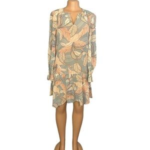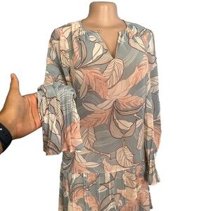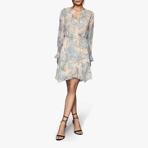 The Dara leaf-print dress in blue is cut from luxurious chiffon and pin-tuck detailing at the cuffs. Wear it with strappy heels and add a pastel clutch bag for a touch of summer flair.