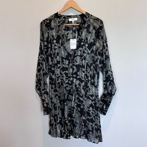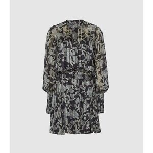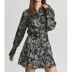 Reiss Dress Womens Sz8 Black Floral Long Sleeve Larissa Sheer NWT has Pockets