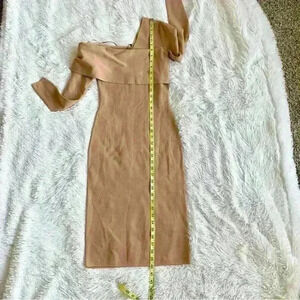 Reiss Ella Dress One Shoulder Long Sleeve BodyCon Knit Camel Midi Academia Sexy