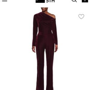 Reiss Ella Red One Shoulder Velvet Jumpsuit | Size 8