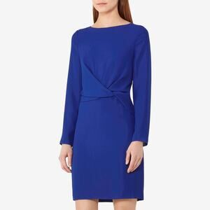 Reiss Elle Knot Front Mini Dress Size 2 Cobalt Blue Classic Elegant Old Money