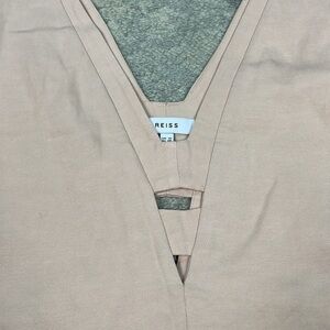 Reiss Emi Linen Blend Top V Neck with Cut Outs Sleeveless Neutral Blush Sz 6
