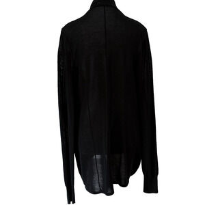 Elegant and effortless chic black open-front draped cardigan sweater.
