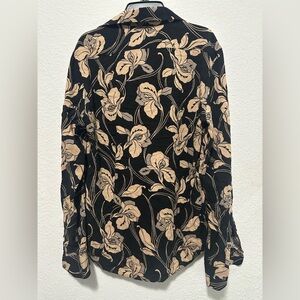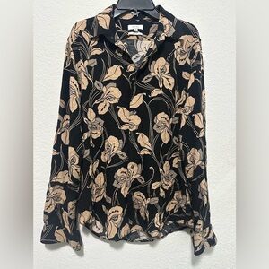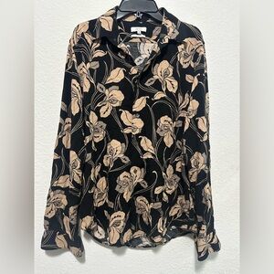 Reiss Floral Black and Tan Women's Button Down Top size S