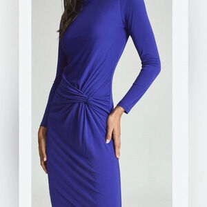NWT Reiss Freya Dress front twist long sleeves turtle neck in Royal blue