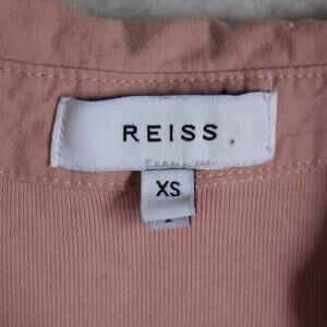 Reiss Georgie Top Women XS Pink Collared Deep V Neck Long Sleeve Minimalist Chic