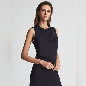Reiss Gianna Bodycon Midi Dress in Navy Blue 4 NWT