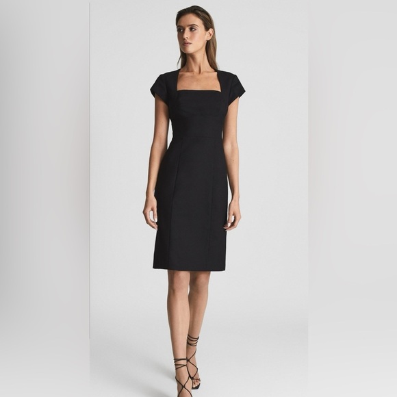 Reiss Haisley Tailored Dress for Woman. Square neckline. Color: Black Size 12.