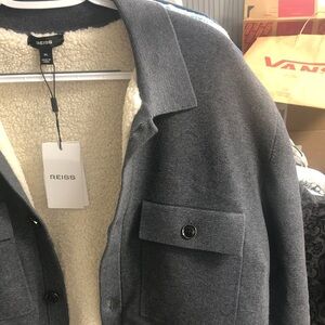 Reiss Heritage Fleece Lined Knit Button Up Jacket Mid Gray Melange