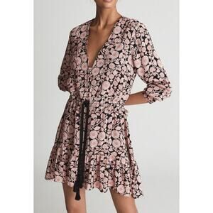 Reiss January Floral Print Mini Dress V Neck Vacation Beach Women's Sz 0